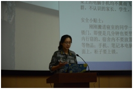 本科课程项目管理中心主任石天老师介绍了教学工作的相关情况,并对学生与家长关注的大类招生与专业分流等问题进行了说明。2017级学生辅导员王鹤棋老师针对学生安全问题与家长们进行了交流,特别向家长们强调了新生入学期间关于人身、财产安全等方面的注意事项。